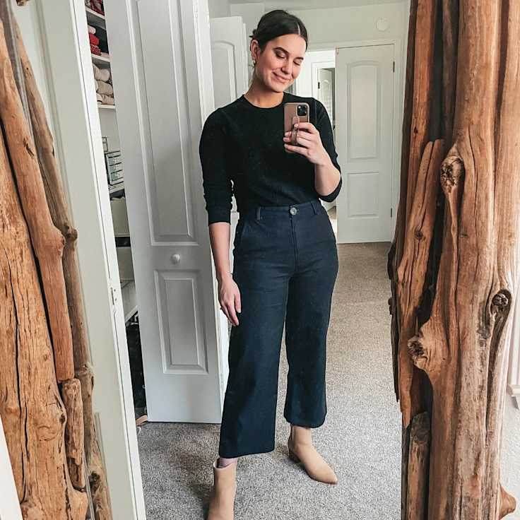 Top with a blazer or jacket: Cashmere is warm but also keeps you comfy so you won’t overheat. The fine-gauge weight is a dream to layer.